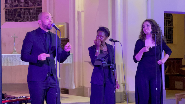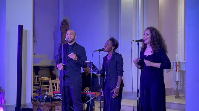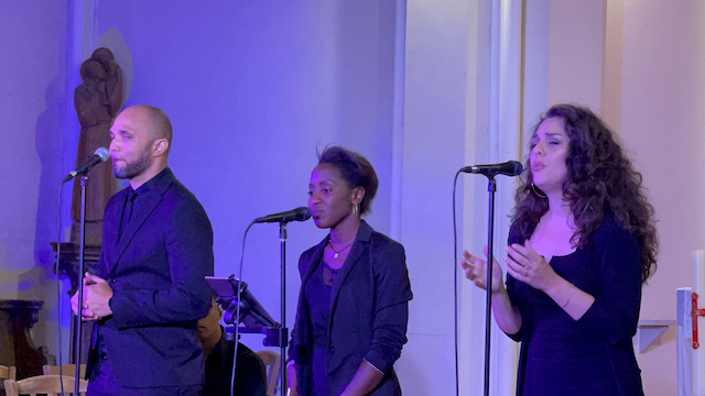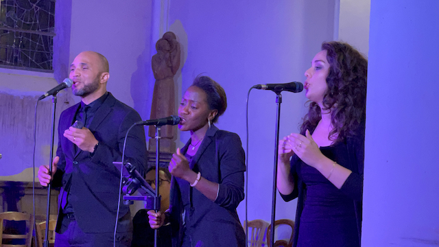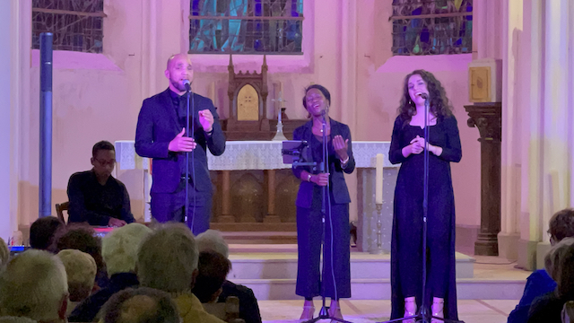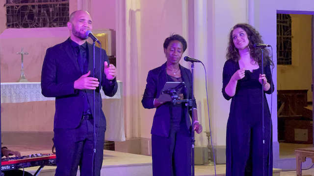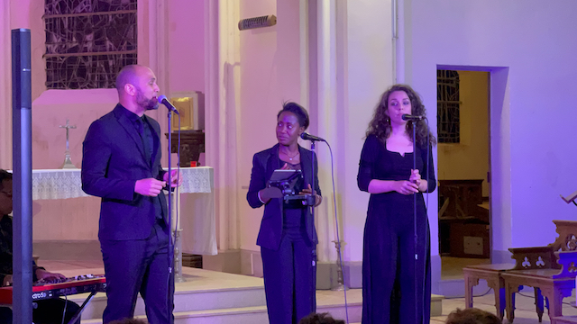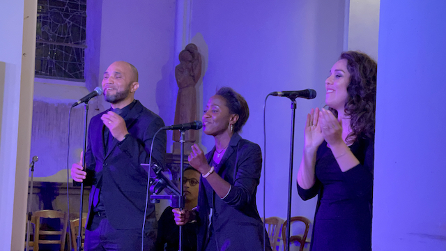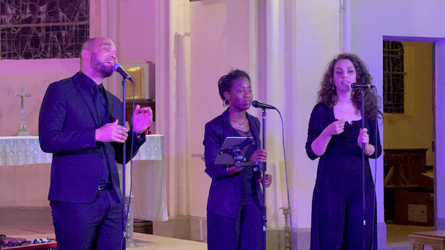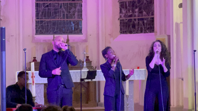 Tous pouvaient alors assister au concert gospel dans l’Eglise, illuminée pour l’occasion, qui a résonné comme rarement au son du gospel, mais aussi de chansons de variété reprise. Le trio Dip Joy a reçu de nombreuses ovations et l’émotion était palpable plusieurs fois dans la soirée, notamment après un « hymne à l’amour » poignant. On sentait la joie parmi les artistes et le public, de se retrouver dans un lieu symbolique, chargé d’histoire : « c’est notre premier concert depuis 2 ans et quelle émotion de revenir dans ce petit village » confiant Mathilde, l’une des chanteuses du trio.