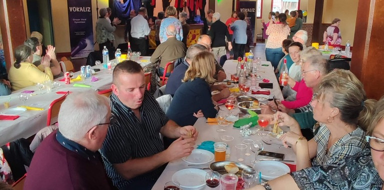 Un record d’affluence pour la harengade du Téléthon qui, cette année se déroulait à la salle des fêtes de Saint leger aux Bois ! Née il y a plusieurs années de l'idée d'un groupe d'amis menée par Brigitte Debure, Nathalie et Daniel Morand avec bien sûr l'aide de nombreux bénévoles, la harengade du Téléthon progresse d'année en années. Ainsi, pour l’occasion, plus de 150 personnes étaient présentes pour déguster harengs grillés ou marinés et applaudir et danser avec Guillaume Pruvost suivi des Vokaliz ! De la vente à emporter a même été réalisée auprès des habitants des environs. Si le bilan financier n'est pas encore connu, on pouvait facilement penser que cette animation s'achemine sur un record de collecte pour l'AFM Téléthon...Suspens avec un chiffre qui sera communiquée lors du lancement du Téléthon de Campneuseville, véritable quartier générale de la mobilisation dans les environs !